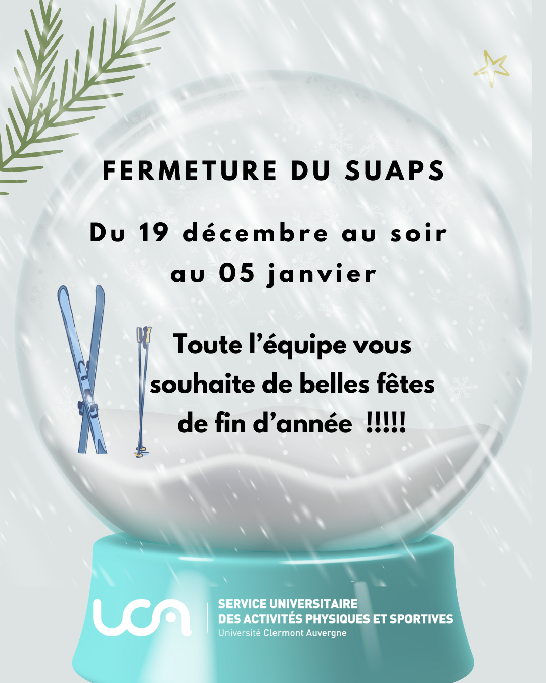 Fermeture du SUAPS 19 décembre au soir au 05 janvier